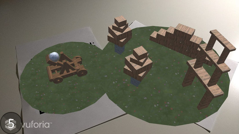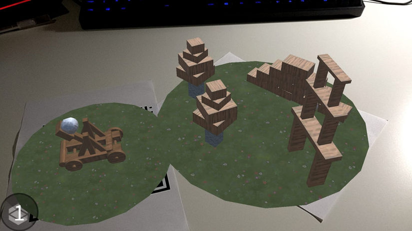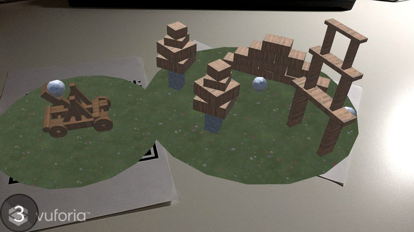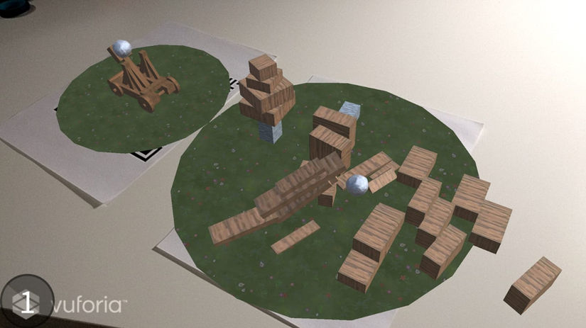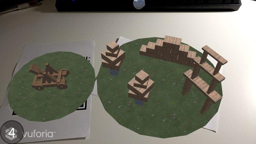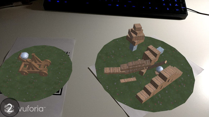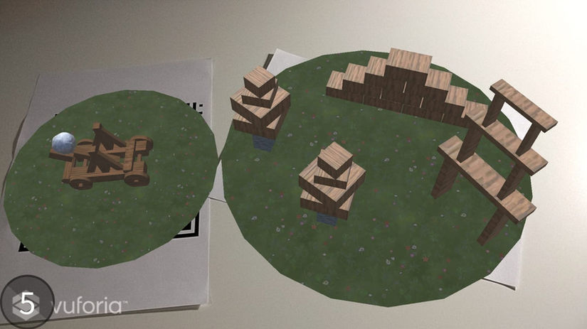 The implementation of the AR capabilities in Unity is done through the Vuforia AR kit, enabling the tracking of 3D elements in the real world using your device camera and the generated QR images to assign the game elements (One for the catapult and another one for the objective).
